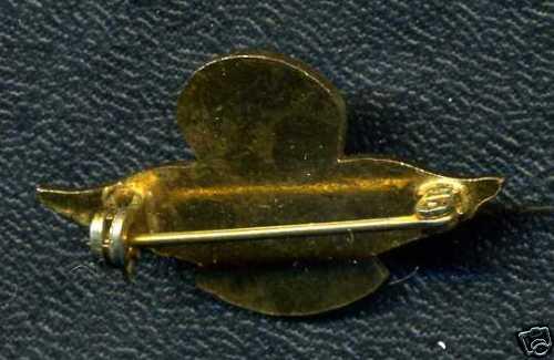 IRVIN parachute company pin. 34mm wide by 20mm high. Gold plated, with colored enamel, pin back. No maker marks on back. Excellent. Post war made, I do not think this was issued for using a Irvin parachute, likely as a souvenir.