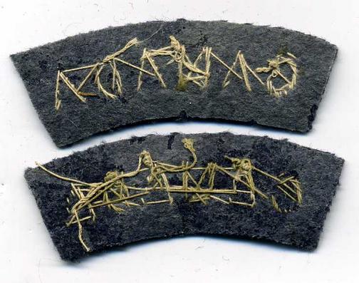 OFFICERS RCAF, Gold Wire, "CANADA" Nationality Shoulder Title Pair. Gold wire on airforce winter blue material. 56mm by 19mm. New, unworn condition.