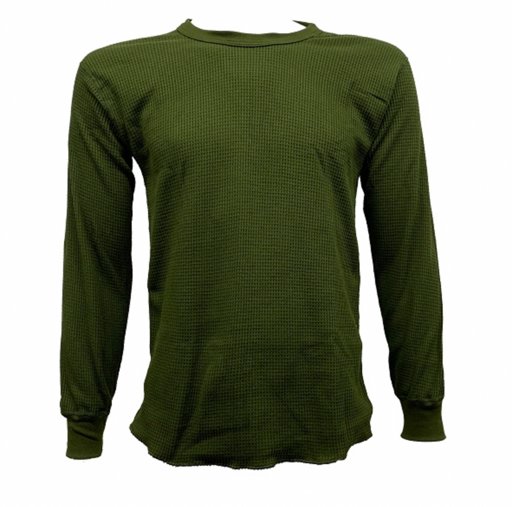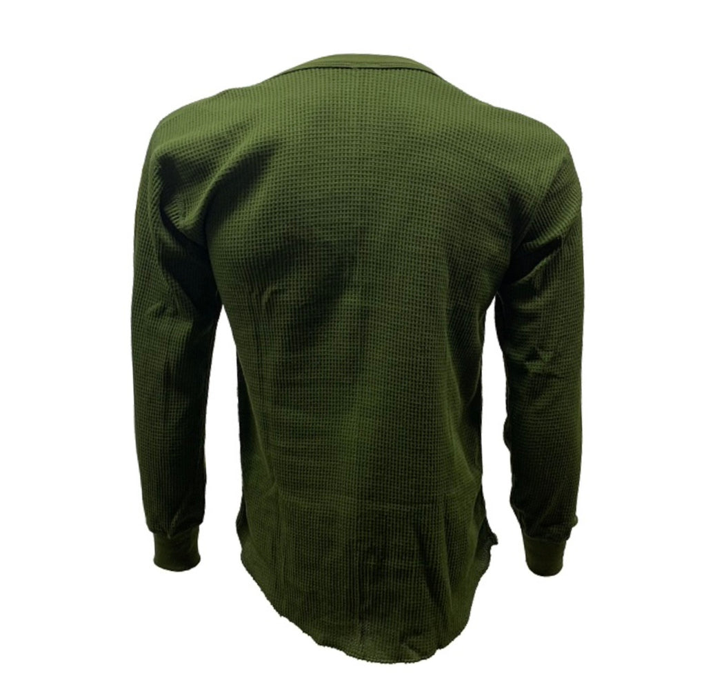 Olive Drab (OD), Waffle Pattern. Made in Canada. Crew neck design on top. Nice wide band on bottoms. Sold as a Set only. Long Underwear.