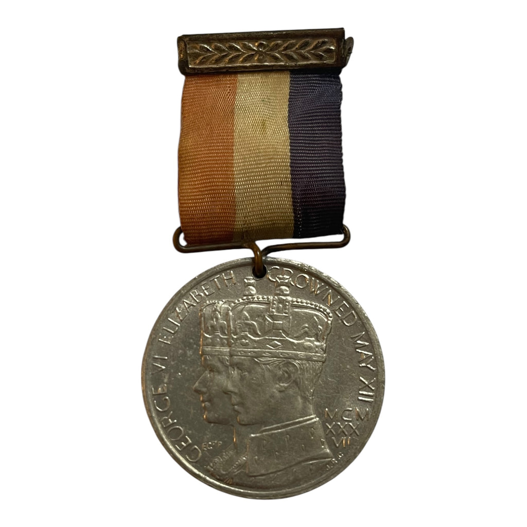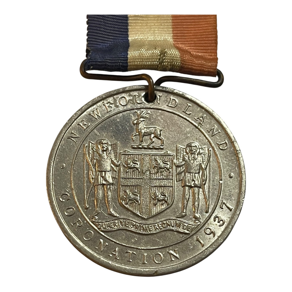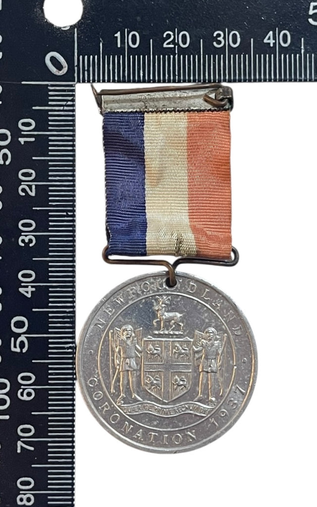 Newfoundland 1937 Coronation Medallion with ribbon. Aluminum medallion to be pinned on.