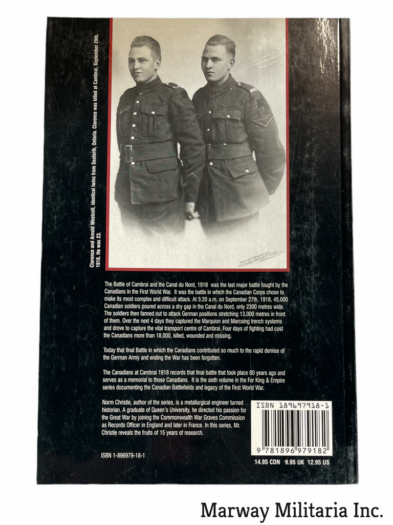 This volume includes an historical Overview of the Battle; a Battlefield Tour of 8 Points; a list of 27 Cemeteries and memorials where the Canadians killed in Battle are commemorated or buried. Asides in the book include: The Spanish Flu, Mutiny 1919, The Westcott Twins, Mons, The Greatest Dogfight of the War and Per Ardua Astra. Profusely illustrated with maps, photos and drawings, and includes a fold-out Tour map at the back of the book.