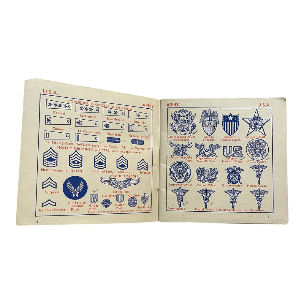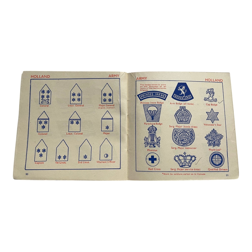 A small booklet showing select badges from Allies of the British during WW2, including USA, France, USSR, China, Holland, Norway, Czech, Belgium and Poland. Boolet shows use and wear.