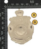 White metal with enamelling. Screw post fasteners.