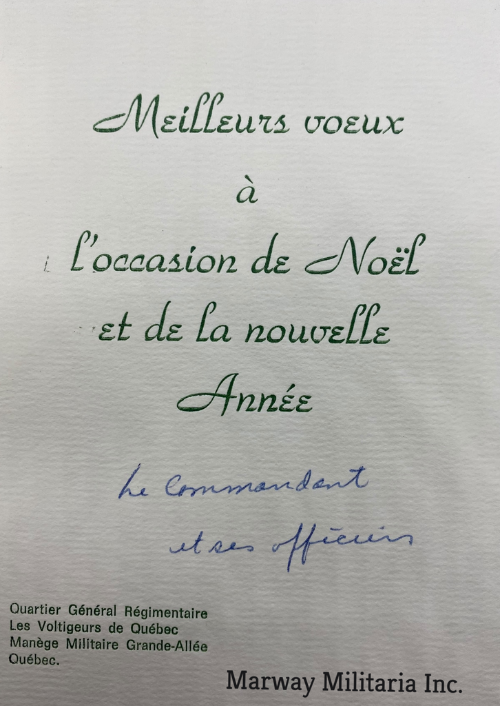 Quartier General Regimentaire Les Voltigeurs de Quebec Christmas Card