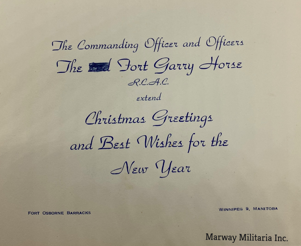 The Fort Garry Horse R.C.A.C. Regiment Christmas Card