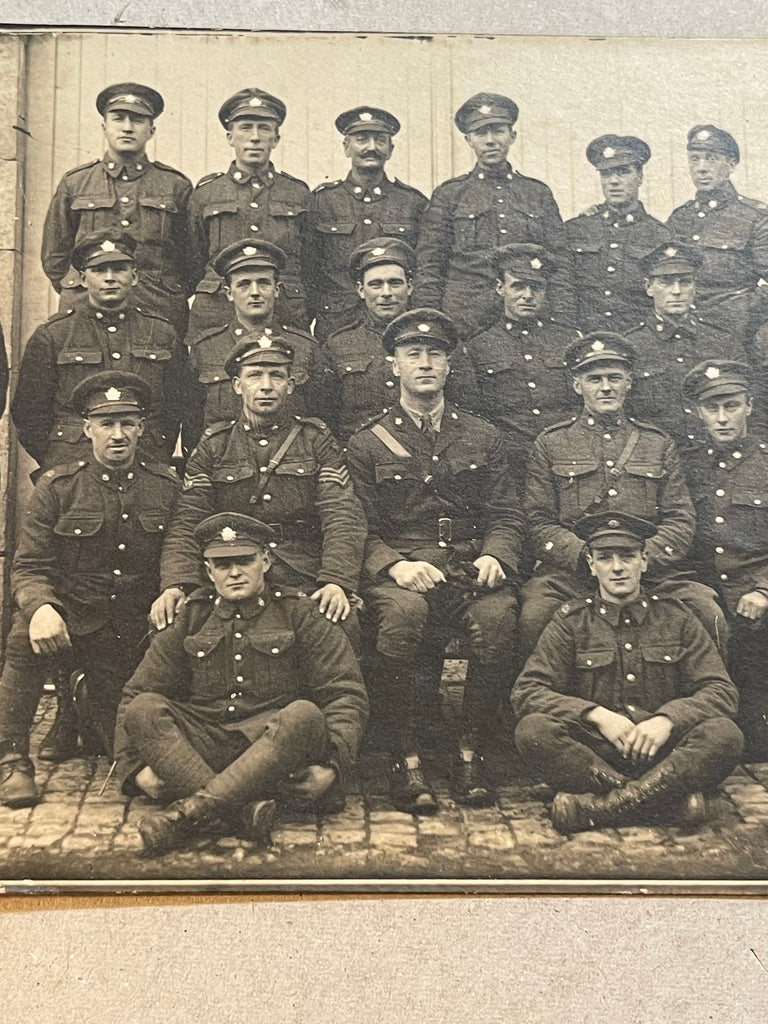 Group of soldiers. Div patch visible. Corners rounded, not postally used.