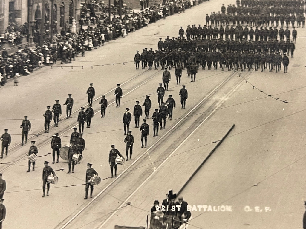 WW1 era Postcard 221st Battalion on Parade in Winnipeg