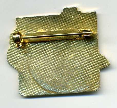Curling Pin: Alberta Oilmen's Bonspiel Association. Brass with colored enamels. Pin back with locking catch. 28mm tall.