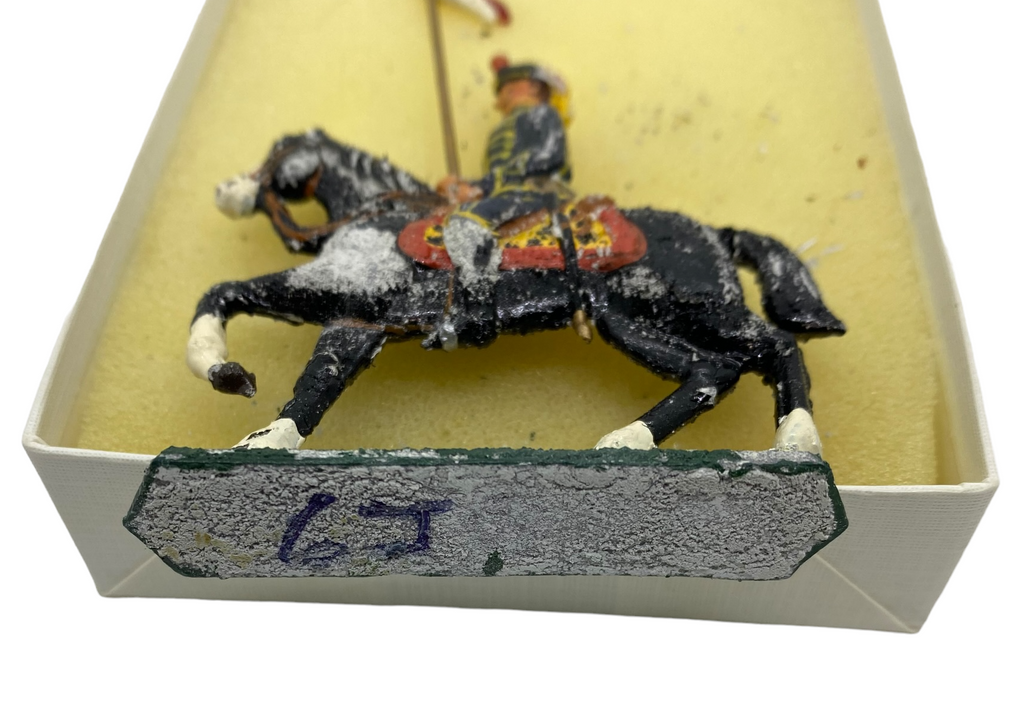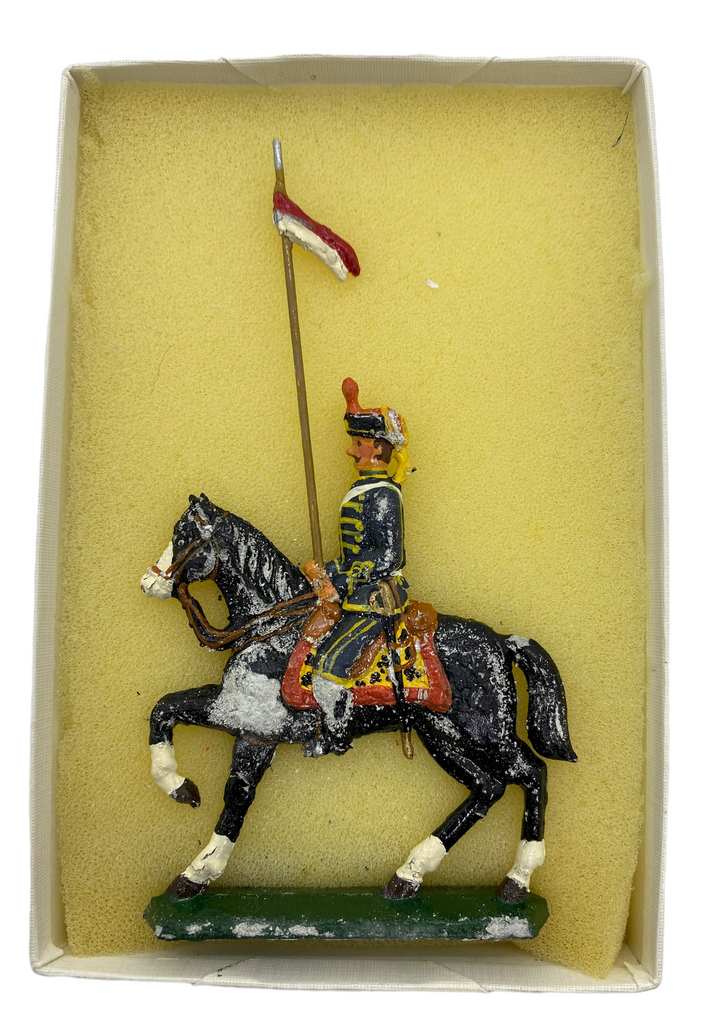 A Vintage Hand Made & Painted Metal Soldier 5" Tall (with Flag). Shows Age & Paint Wear In Box of Issue.
