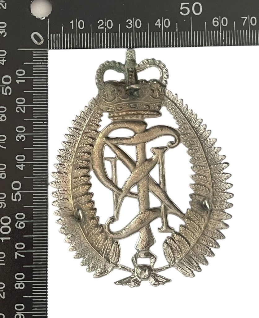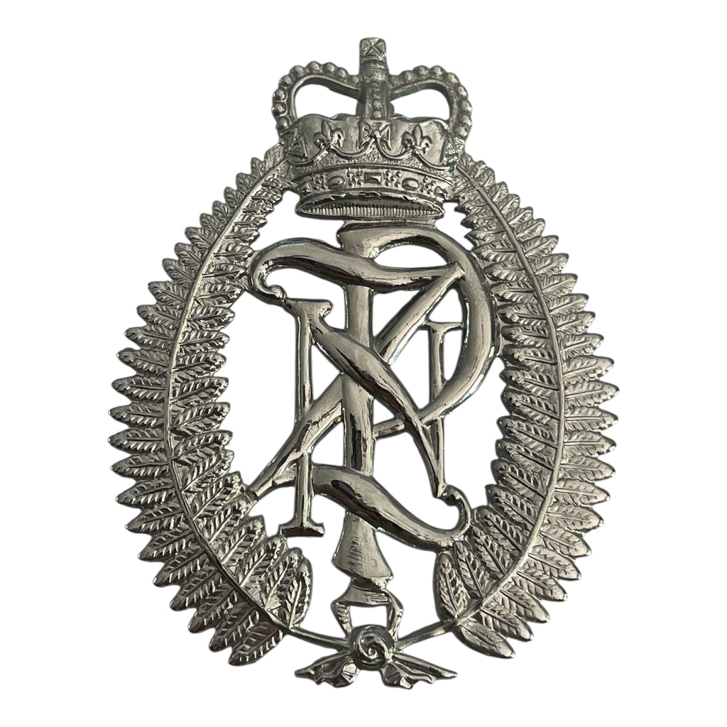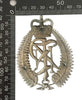 Chromed white metal with lug fasteners. Post 1953 issue with Queens Crown.