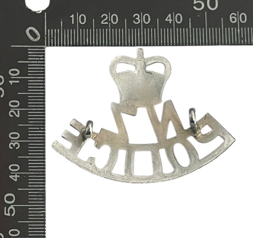 Chromed white metal with lug fasteners. Post 1953 issue with Queens Crown.