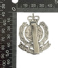 Chromed white metal with slider fastener. Post 1953 issue with Queens Crown.
