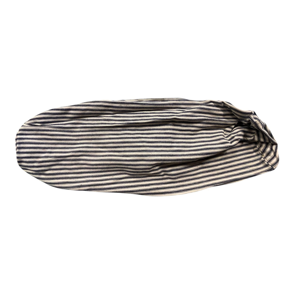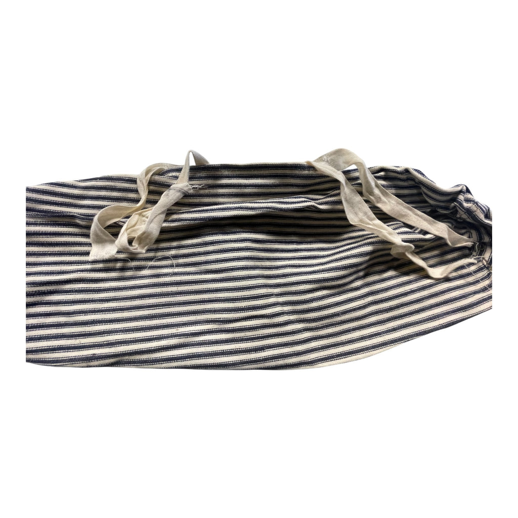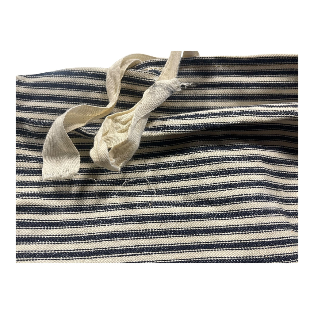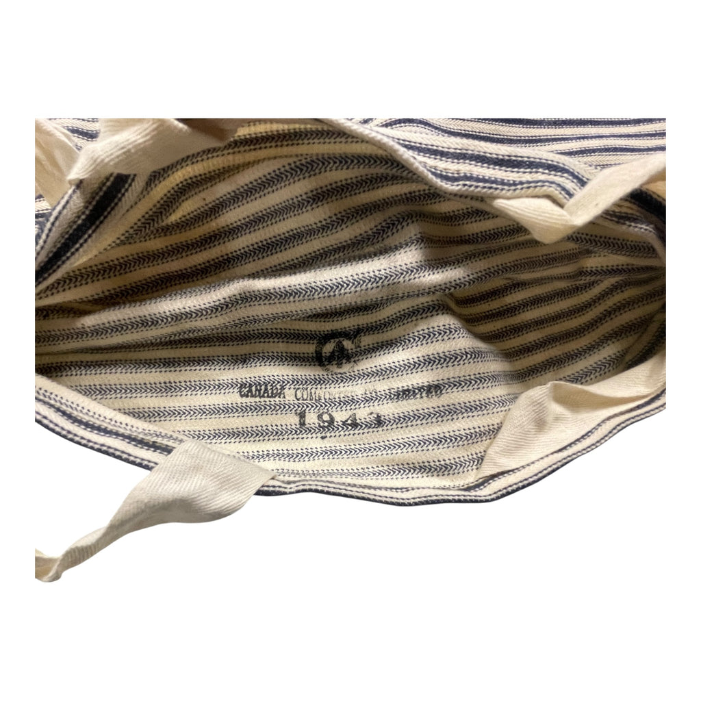 Cloth pillow, white with blue stripes. Cloth ties. Dated 1943 with C broad arrow. Unused condition.
