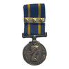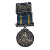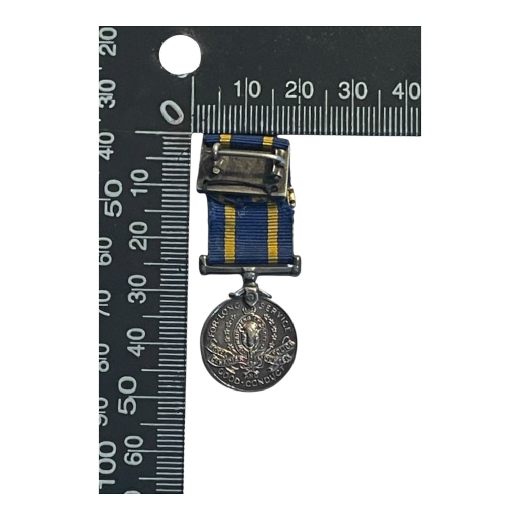 A mini size replica with ribbon. Silver plated. This is the first issue Eliz, and the earlier KC crest on the obverse. With 35 year service bar.