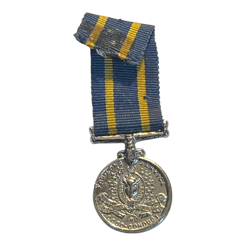 A mini size replica with ribbon. Plated. This is the first issue Eliz, and the earlier KC crest on the obverse.