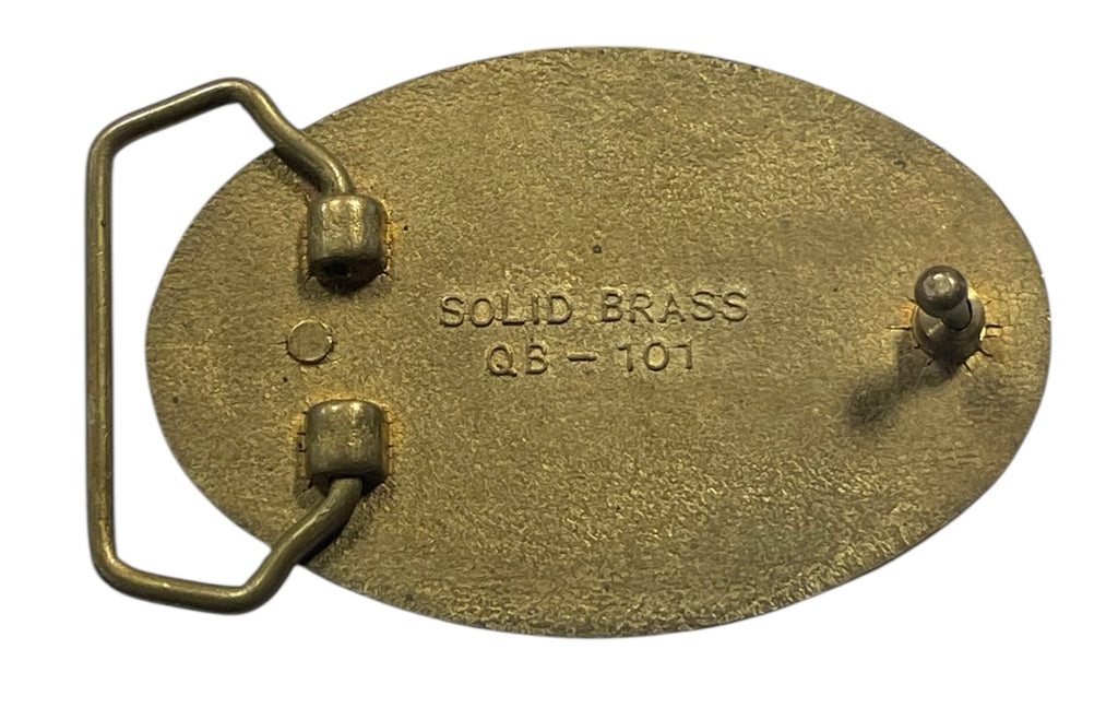 A non official buckle for the RCMP. Shows use and wear. Marked Solid brass on the reverse.