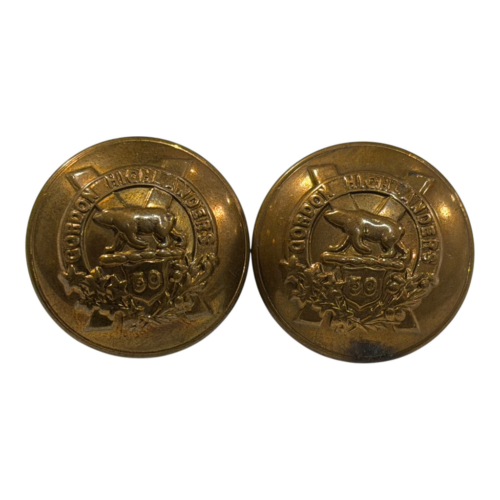 Lot of 2. Pre WW1 50th Gordon Highlanders Uniform Button. Brass metal. With loop on the back. Large size.