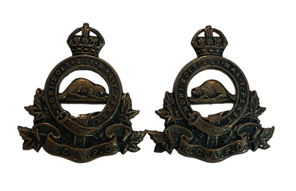 OFFICERS Service Dress WW2 Royal Canadian Army Pay Corps Collar Badge Pair