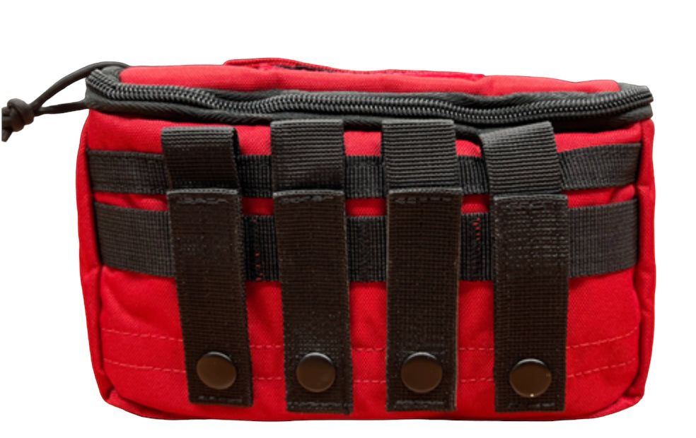 Two-way zippers with cord silent zipper pulls offer easy and complete interior access. Rear MOLLE straps compatible with PALS webbing platforms. Front rows of PALS webbing for additional pouch attachment. Has numerous elastic loops inside to keep all your supplies in place. With Velcros First aid Patch on the front.