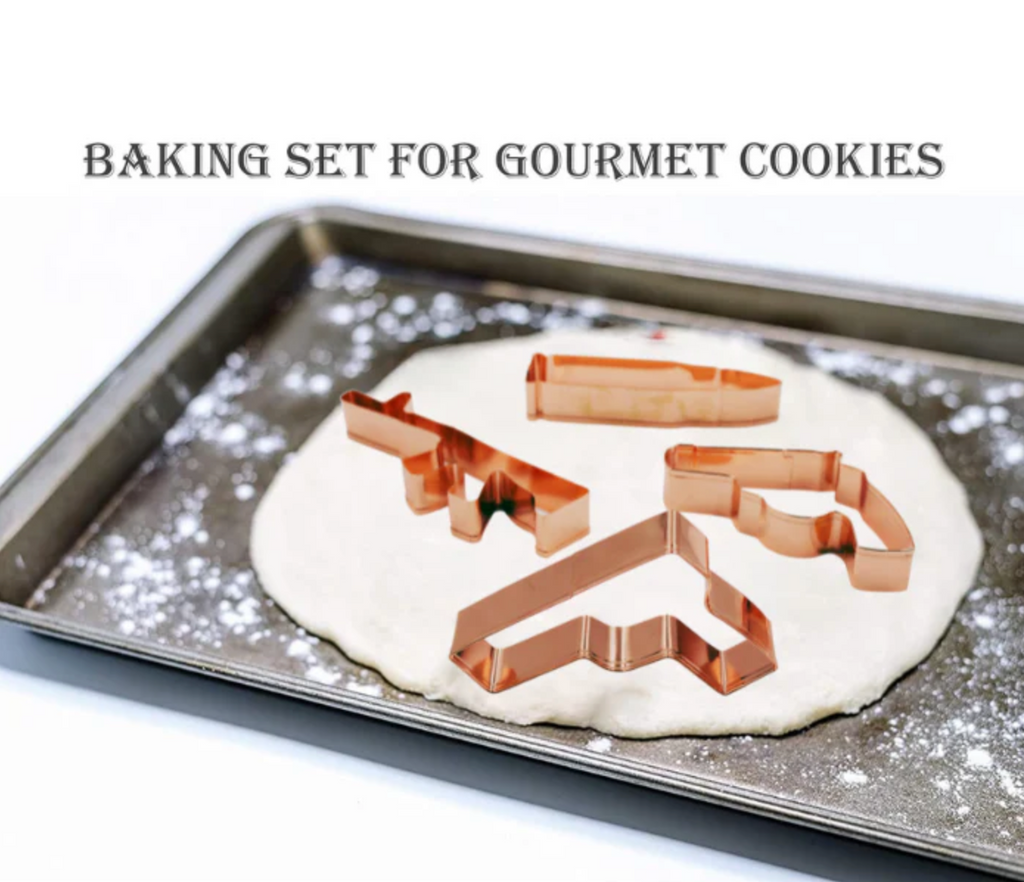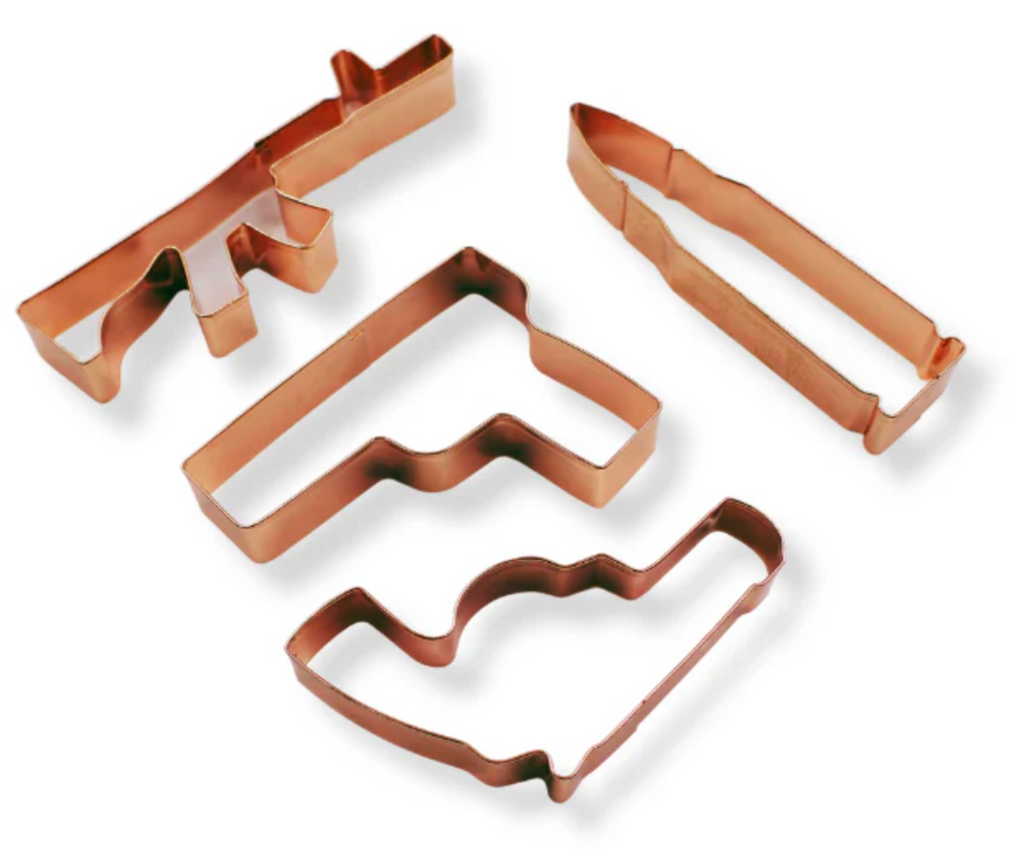 Now these are fun! A set of cookie cutters for your next day of baking in the shapes of an UZI, Sport Rifle, 50 Cal Bullet, Handgun. A fun item we thought "why not"!