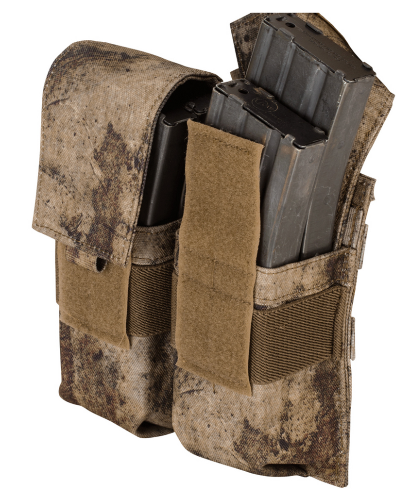 Coyote  The protective hook-n-loop flap covers are adjustable and can be tucked behind your mag for rapid re-holster. Made of tough pack cloth that is been form–fitted to securely hold your mag. Attaches to any PALS webbing.