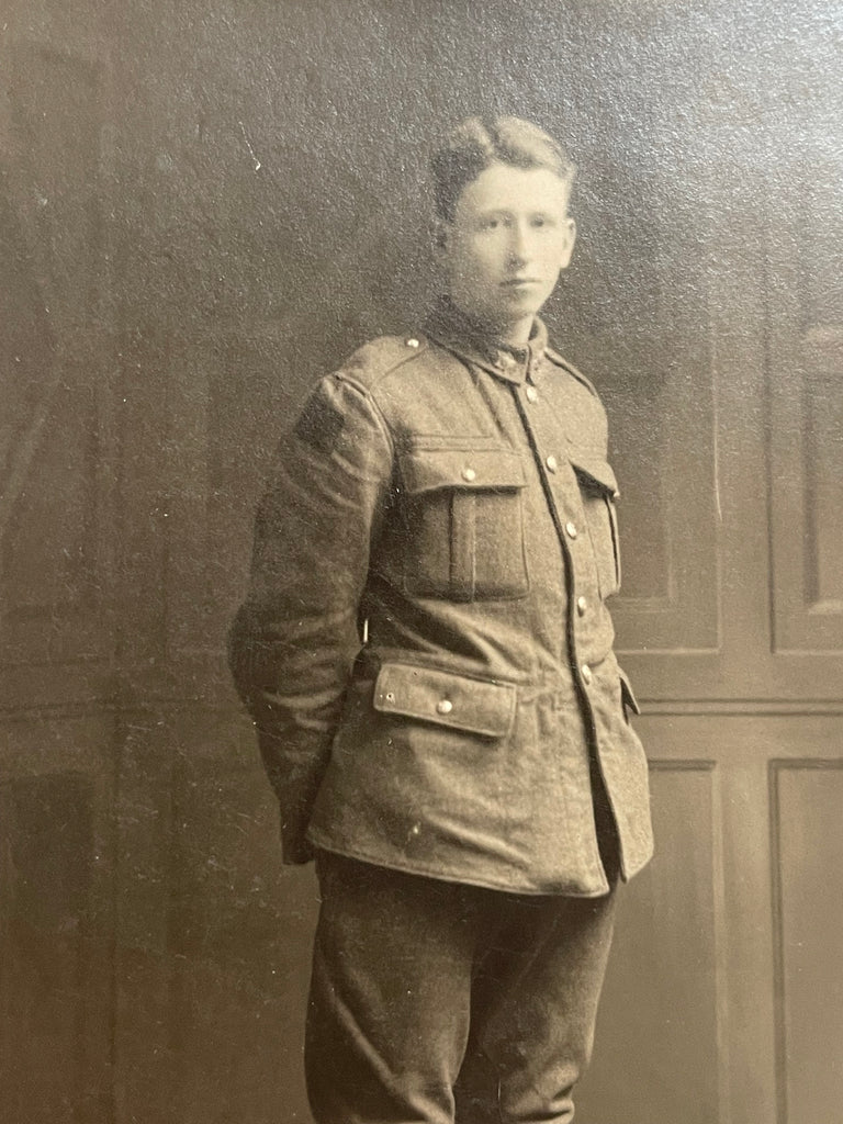 Shows soldier wearing uniform with Div patches in studio. Postally not used. Embossed in bottom corner.WS22701