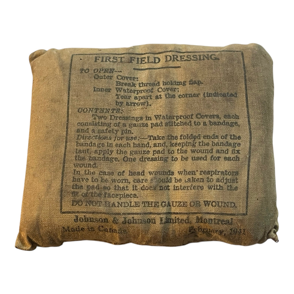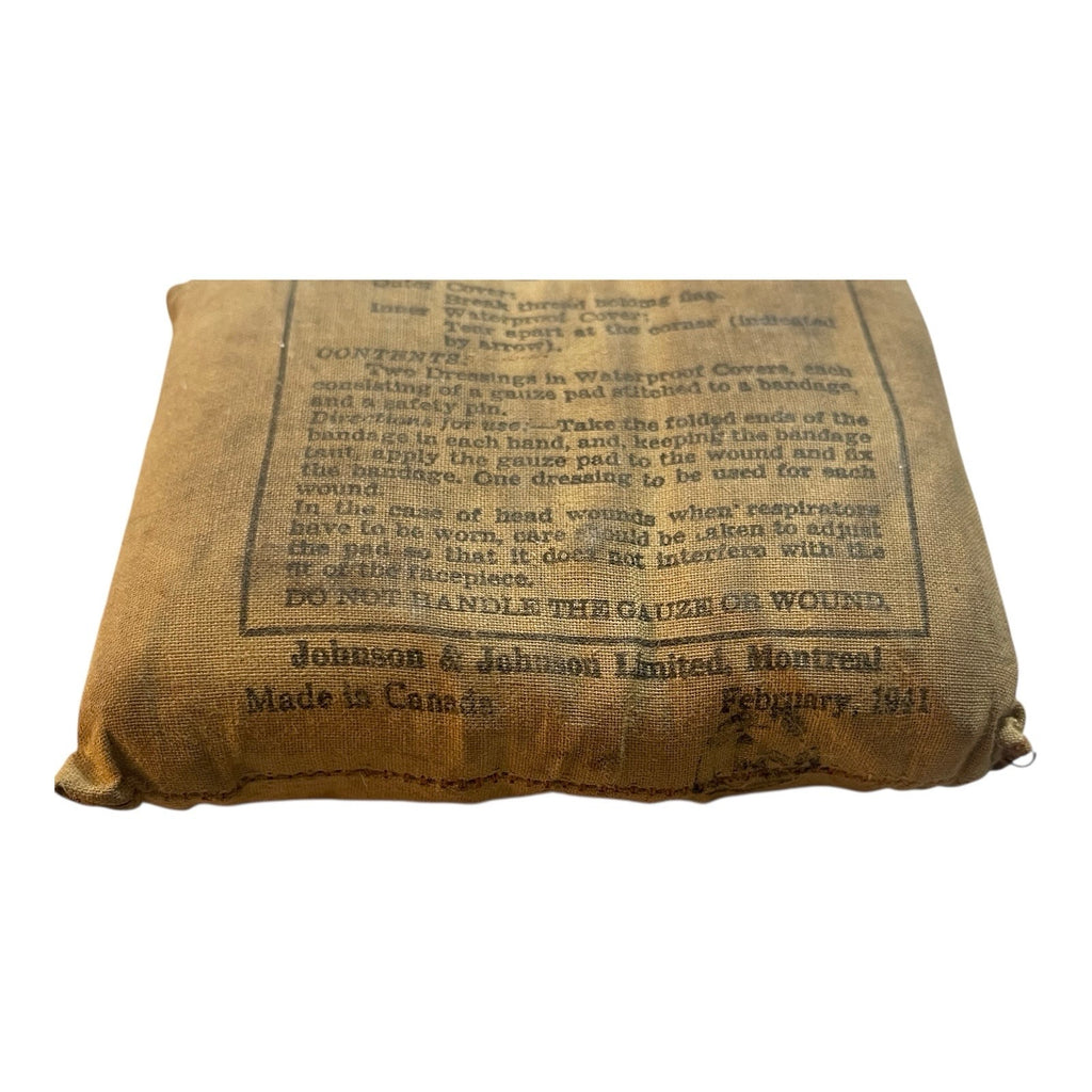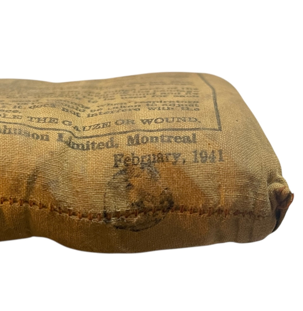 A nice early dated 1941 field dressing. Made by Johnson & Johnson, Monteal. Dated February 1941, with partial C Broad Arrow.