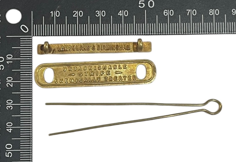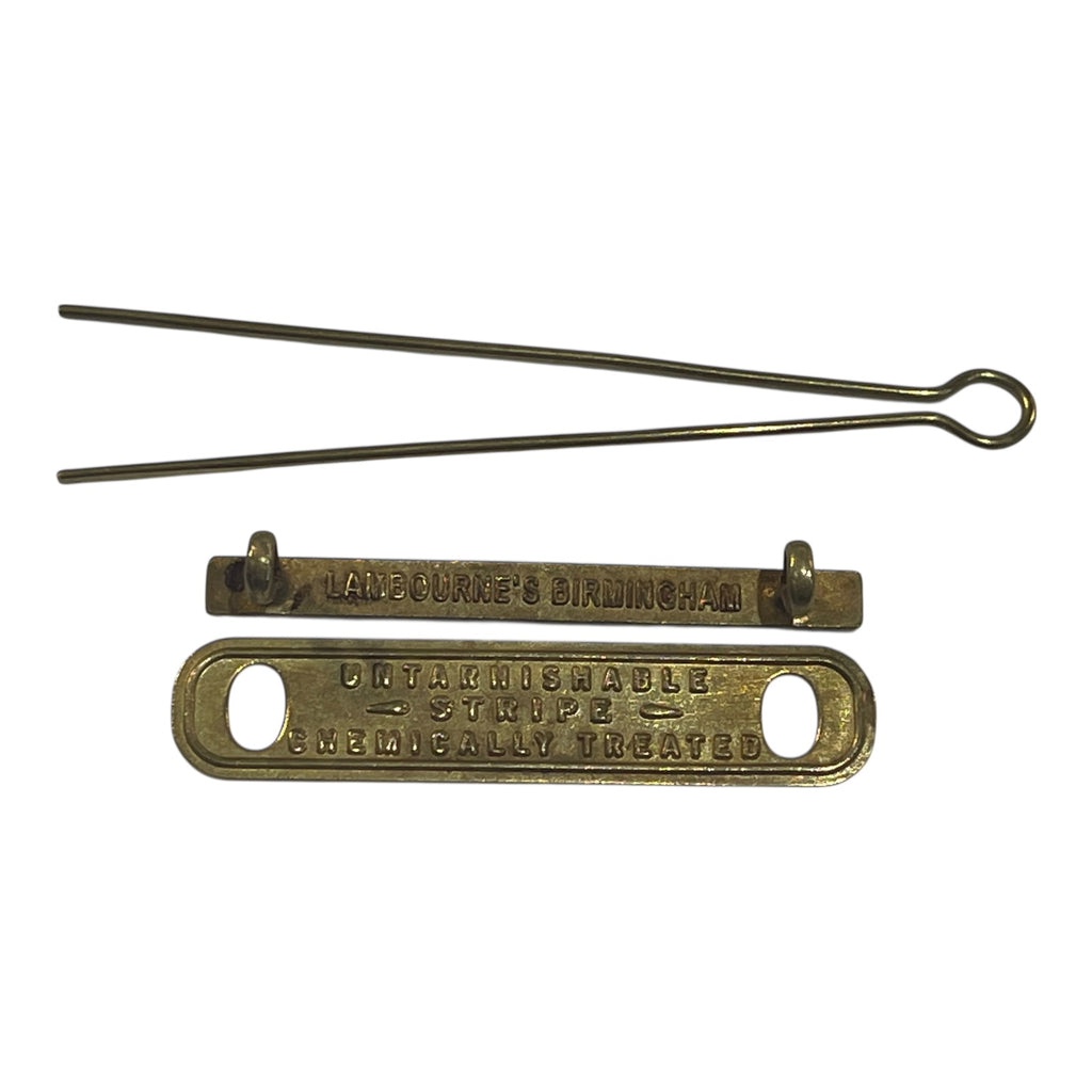 A unique, and seldom offered variation from the No 4 wound stripe often seen. The backing plate to this piece reads " UNTARNISHABLE STRIPE CHEMICALLY TREATED" the bar itself is marked LAMBOURNE's BIRMINGHAM. Comes with an extra long cotter pin.