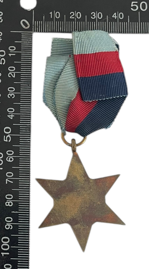 WW2 issue, full size, with a piece of genuine ribbon that has been tied down previously.