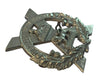 Cast white metal, lug fasteners, A nice older issue. A heavy, well made badge.