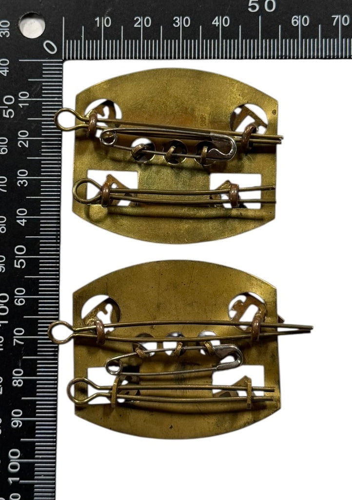 Brass badges on backing plates. Nice matched set.