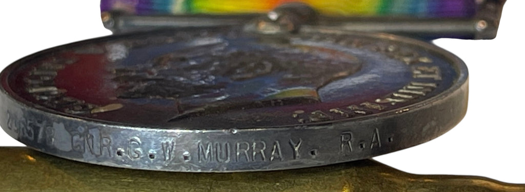 Genuine full size medal with incorrect ribbon. 206578 GNR GW MURRAY ROYAL ARTILLERY