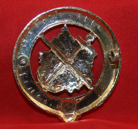Canadian Corps of Commissionaires Cap Badge. Anodized. Lug fasteners on the back, one missing.