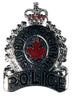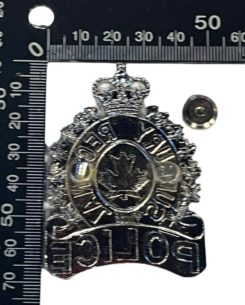 Chromed metal with coloured lettering. One screw post fastener remaining. Scully maker stamped.