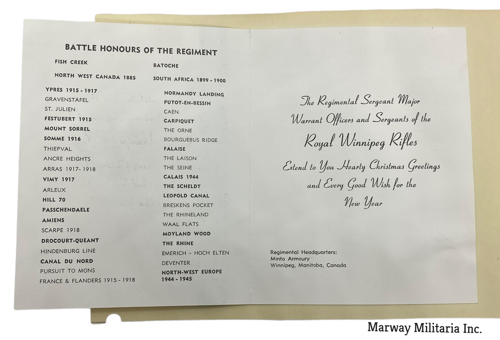 The Royal Winnpeg Rifles Regiment Christmas Card