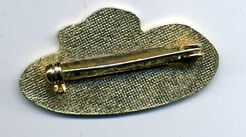 Curling Pin: Calgary Curling Club. Brass with colored enamels. Pin back with locking catch fastener. 19mm tall.