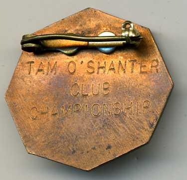 Curling Pin: Tam O'Shanter Club Championship, 1963. Copper. Pin back with locking catch fastener. 29mm tall.