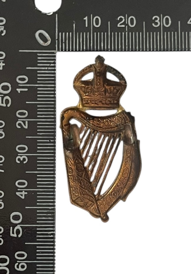 Blackened brass metal with lug fasteners. Pre1953 issue with Kings Crown.