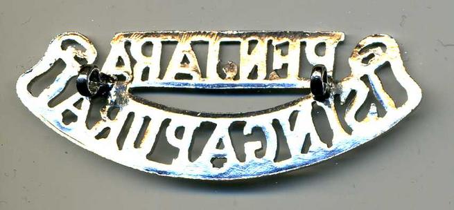Penjara Singapura Shoulder Title. Chromed white metal, with lug fasteners on the back. 65mm wide.