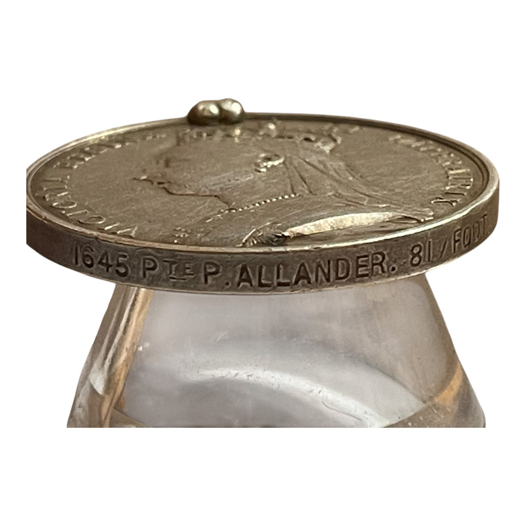 Silver medal, missing suspension. Impressed 1645 PTE P. ALLANDER . 81 / FOOT. No research completed.