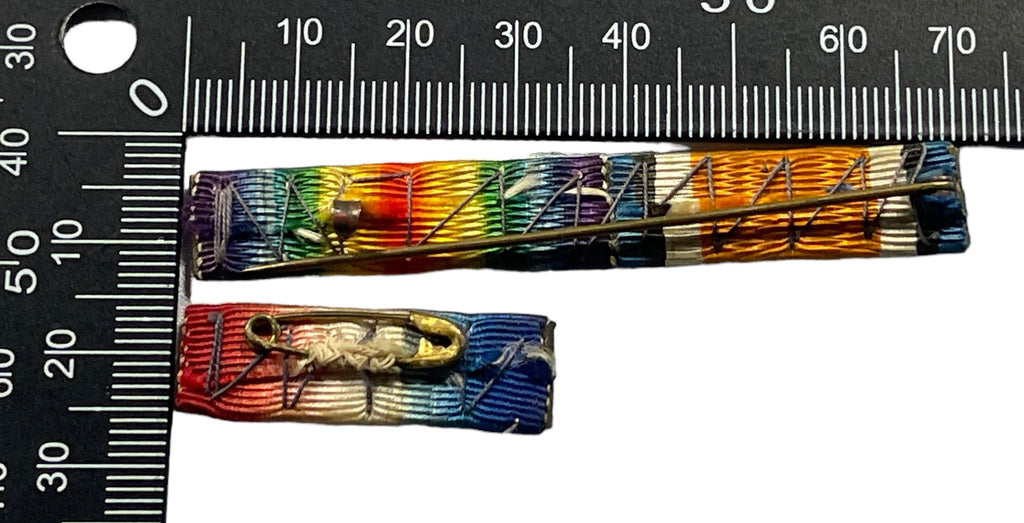 Two separate pieces. Includes mounted War & Victory ribbons with pin back, and separate 1914 star with safety pin fastener on reverse.