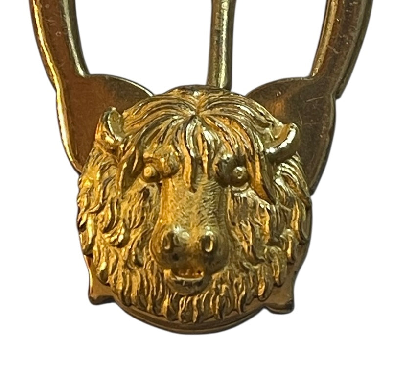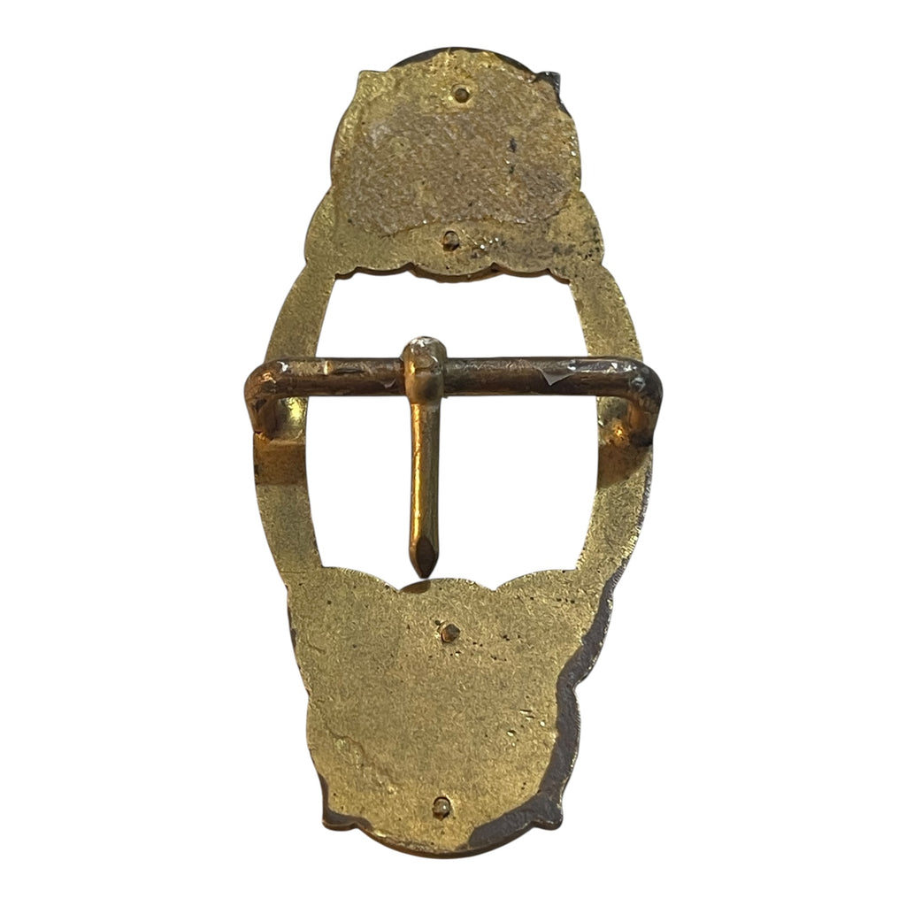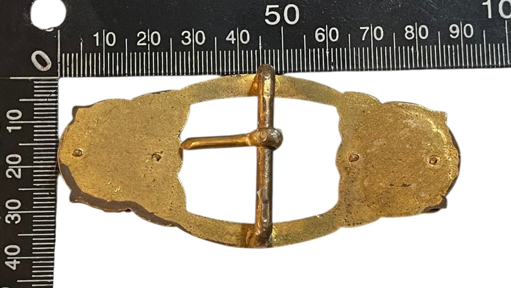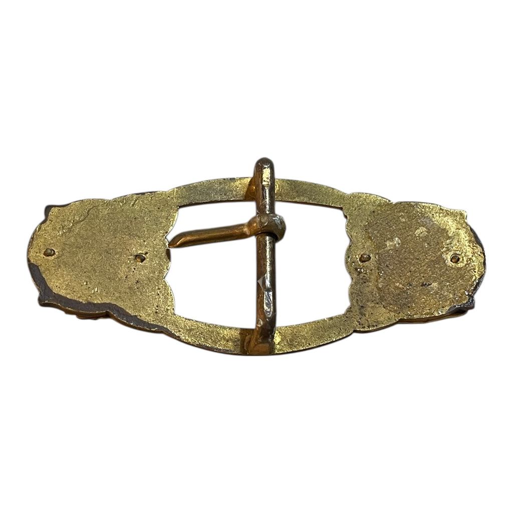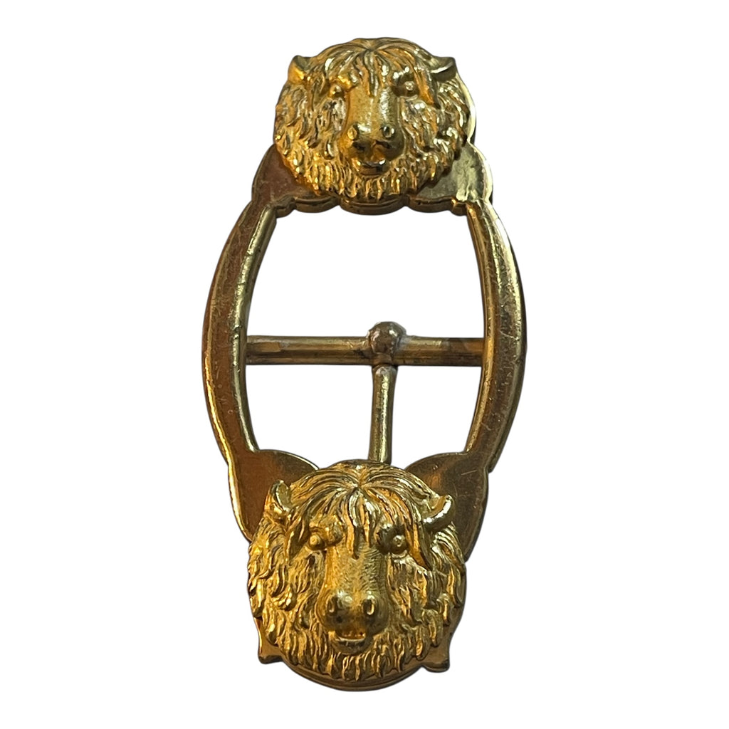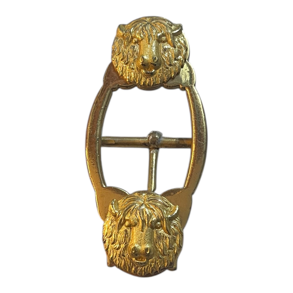 Frosted gilt Buffalo Heads on brass buckle. Klancher refers 3-33