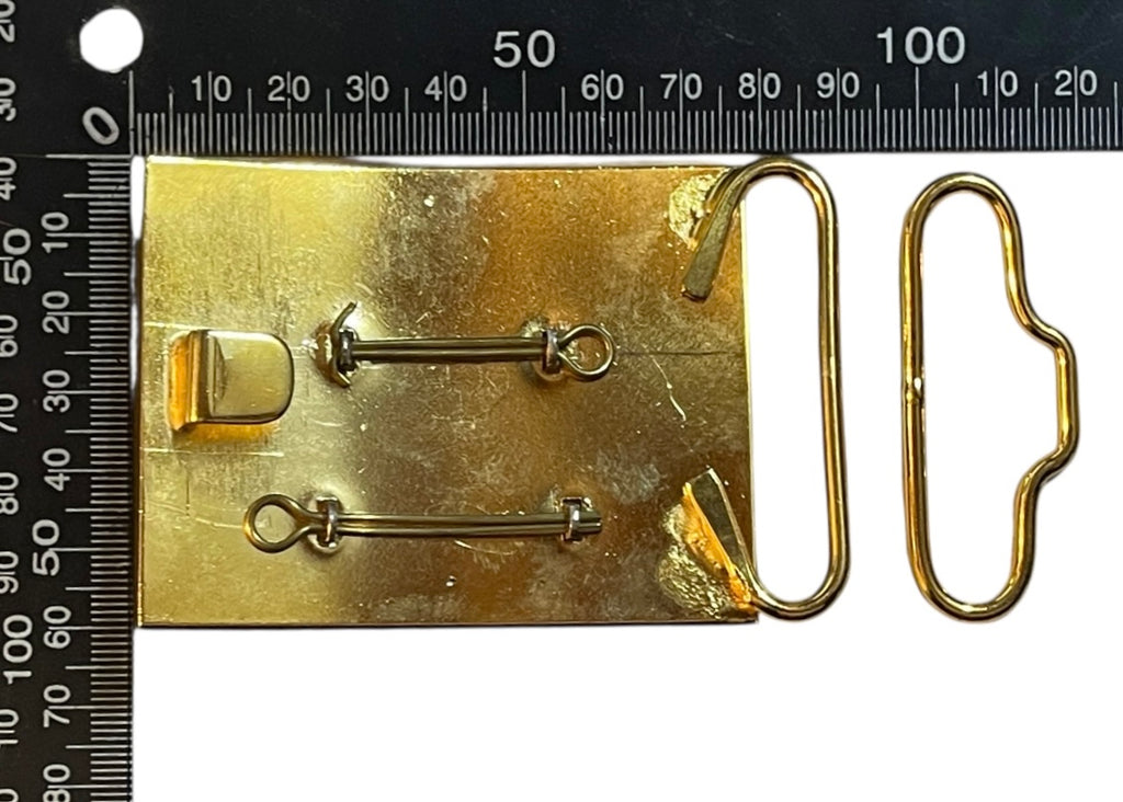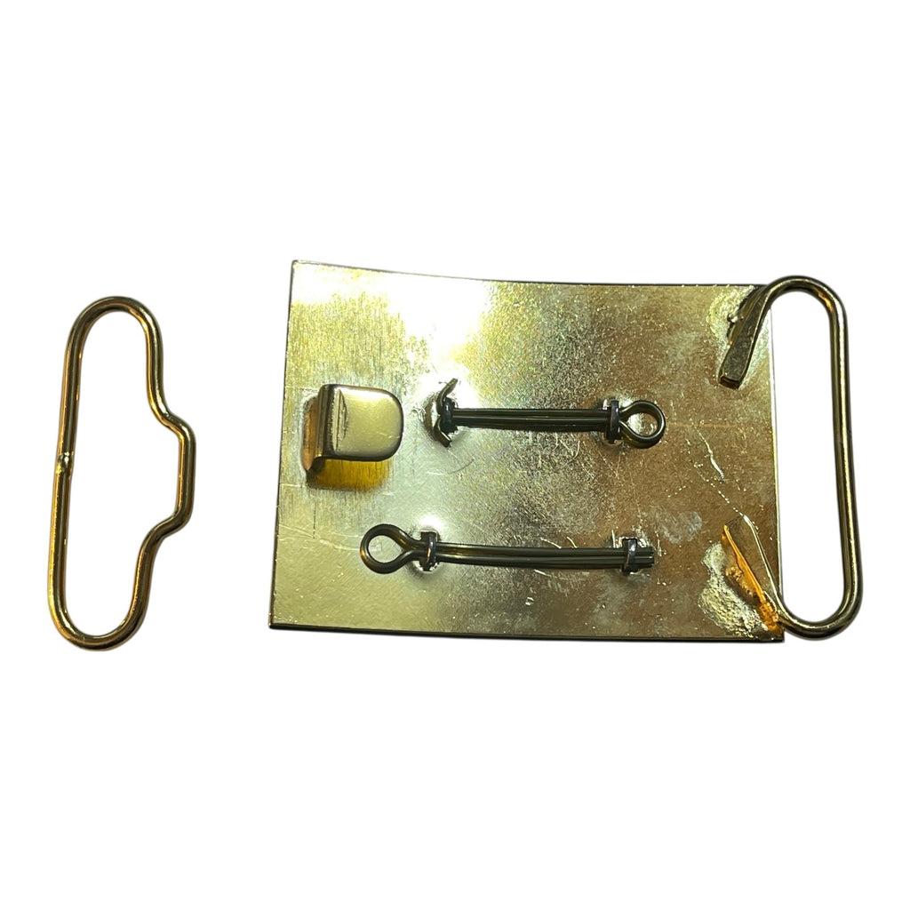 Post 1953. Frosted Cap style badge on gold plated buckle.