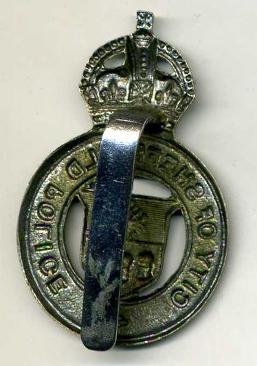 City of Sheffield Police Cap Badge. Kings Crown, Pre 1952 issue. White metal with slider on the back.