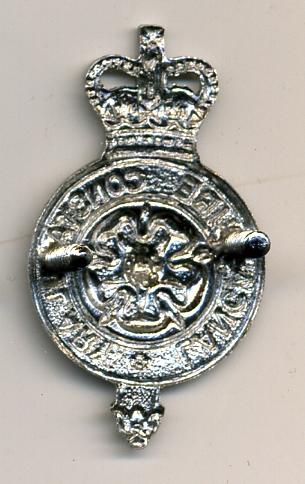 Lancashire Constabulary Collar Badge. White metal, with screw post fasteners. Queens Crown, post 1953 issue.