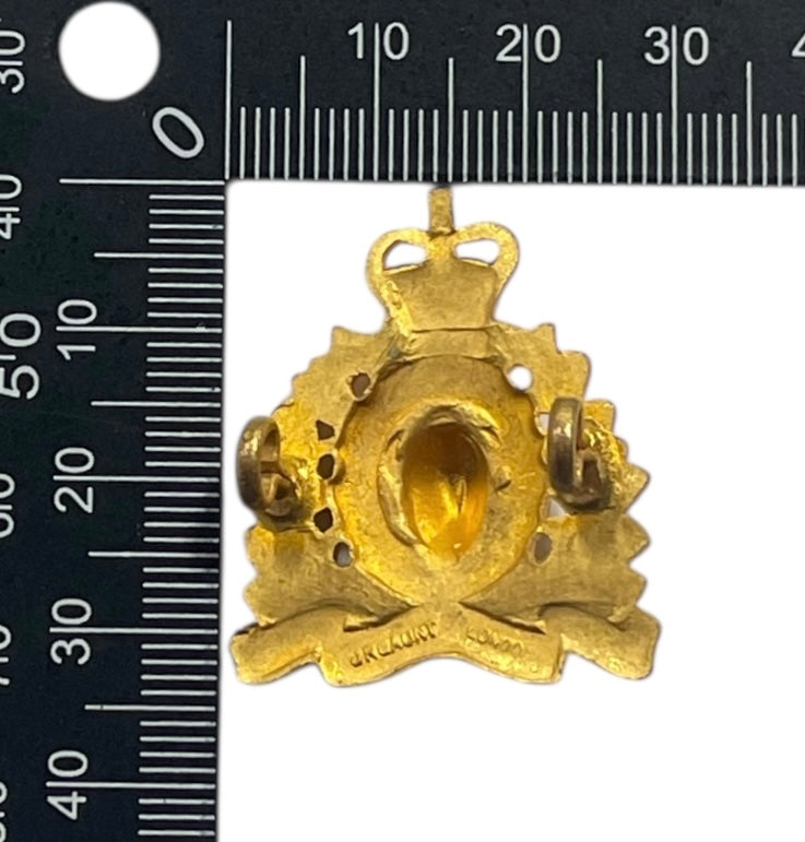 Fire gilt brass. Lug fasteners. Post 1953 crown. Beautiful badge.