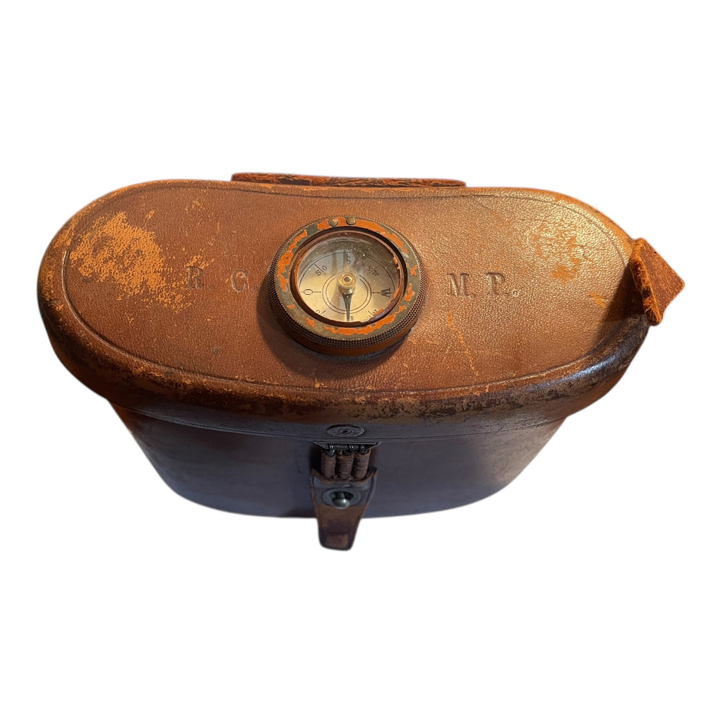Standard leather binocular case with working compass the top. RC MP stamped into the leather. No strap. This is not an issued item, likely a private purchase during WW2. This item was originally sold on eBay for $203 usd.