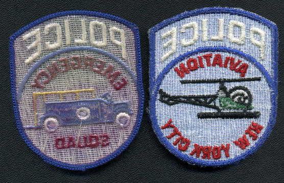 New York City Police AVIATION & EMERGENCY SQUAD Patches. The Aviation patch is of older manufacture it has been removed from a uniform. The Emergency Squad is in new condition.