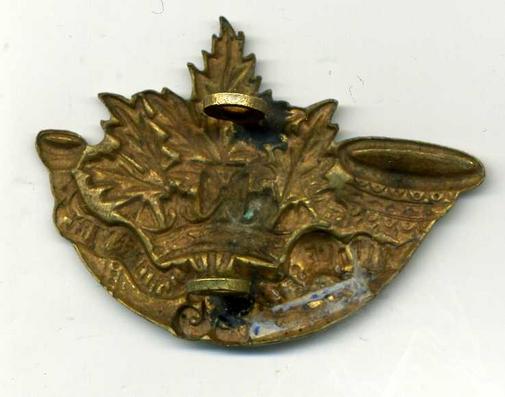 Collar badge for the 26th MIDDLESEX LIGHT INFANTRY, brass, Mouth of horn to left, flat Ellis Lugs,