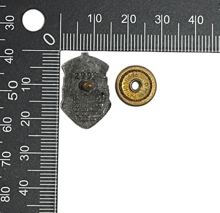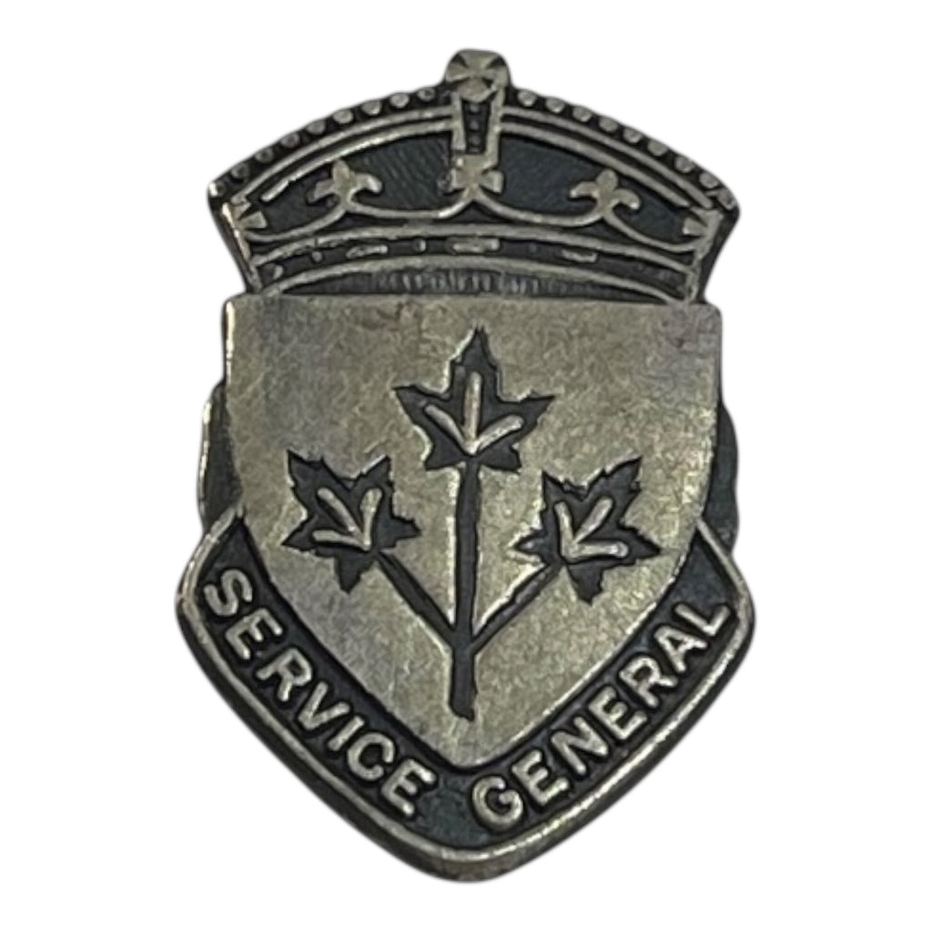 A seldom offered French language General Service lapel badge. Screw post fastener. Numbered 929990. Sterling.